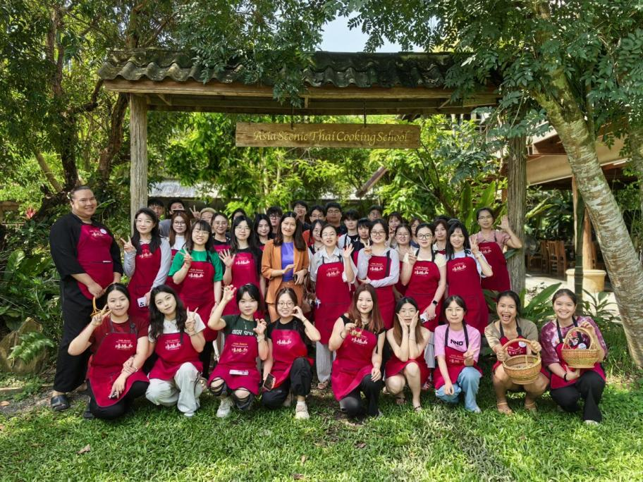 与泰国清迈大学联合开展的2025年暑期访学项目迎来了又一文化体验亮点——泰餐烹饪实践体验课,本次课程在Asia Scenic Thai Cooking School(亚洲风情泰式烹饪学校)顺利开展。