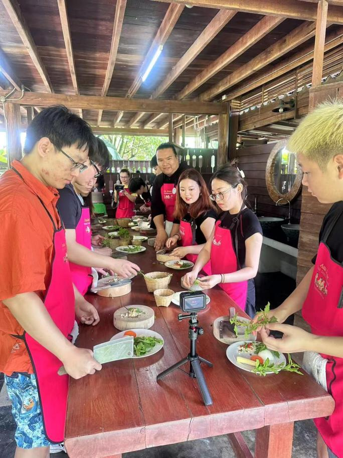 作为本次暑期访学项目系列文化实践的重要组成部分,泰餐烹饪课程有效增进了学生对泰国饮食文化的理解与认同。活动中,带队教师全程参与、积极引导,充分发挥了文化交流的引领作用,亦成为师生共同成长的实践典范。接下来,访学团还将持续参与形式多样的本地文化课程,在体验中不断拓宽视野、深化认知,努力成长为架设“中泰交流的桥梁”,为中国—东盟人才培养工程注入更多青春动能与实践活力。