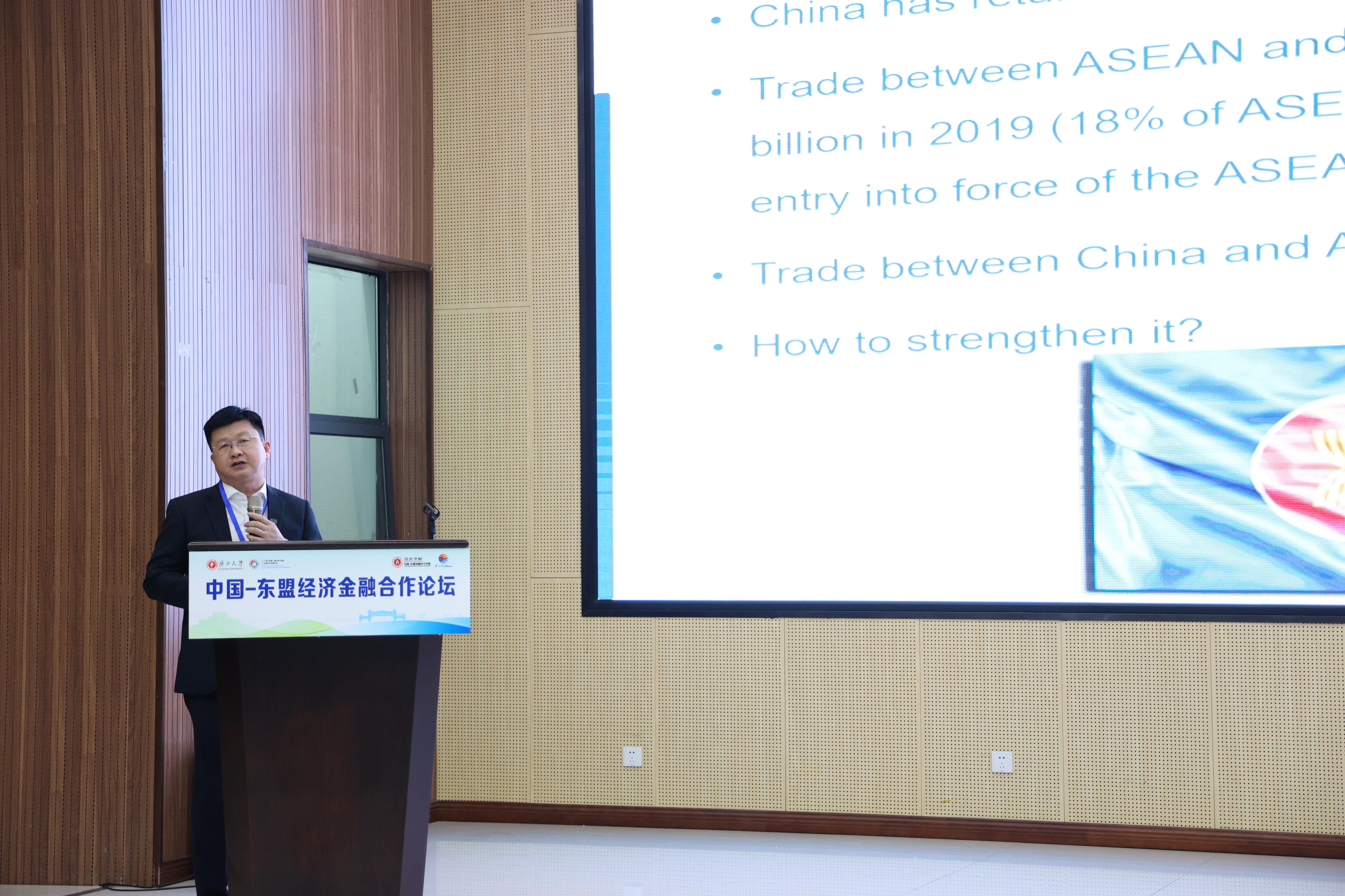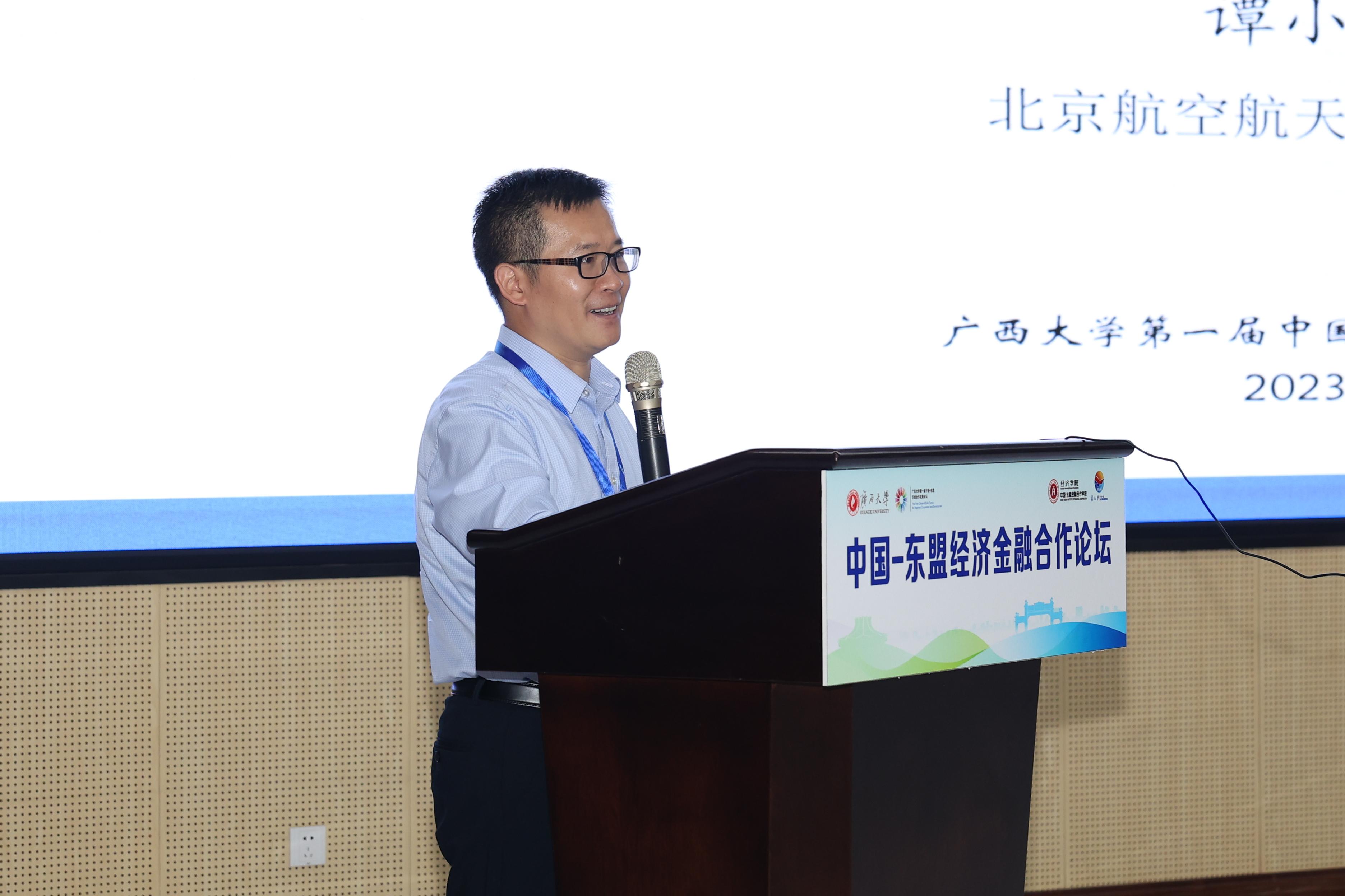 广西大学党委常委、副校长夏国恩出席论坛并致辞,对出席论坛的领导嘉宾表示诚挚的欢迎与衷心的感谢。他表示,2023是中国—东盟建立战略伙伴关系20周年,已成为亚太区域合作中最为成功和最具活力的典范。长期以来广西大学依托区位优势,深耕东盟“朋友圈”,积极开展交流合作,共享发展机遇。希望专家们广泛交流、畅所欲言,深入总结过往中国—东盟经济金融合作经验,共同探讨未来中国-东盟经济金融高质量发展的新模式、新路径。广西大学将继续努力建成服务面向东盟开放合作的人才培养基地、国际高端智库和特色鲜明的区域创新中心,为区域合作发展提供强有力的智力支撑和人才支撑。