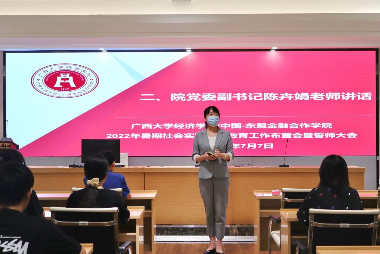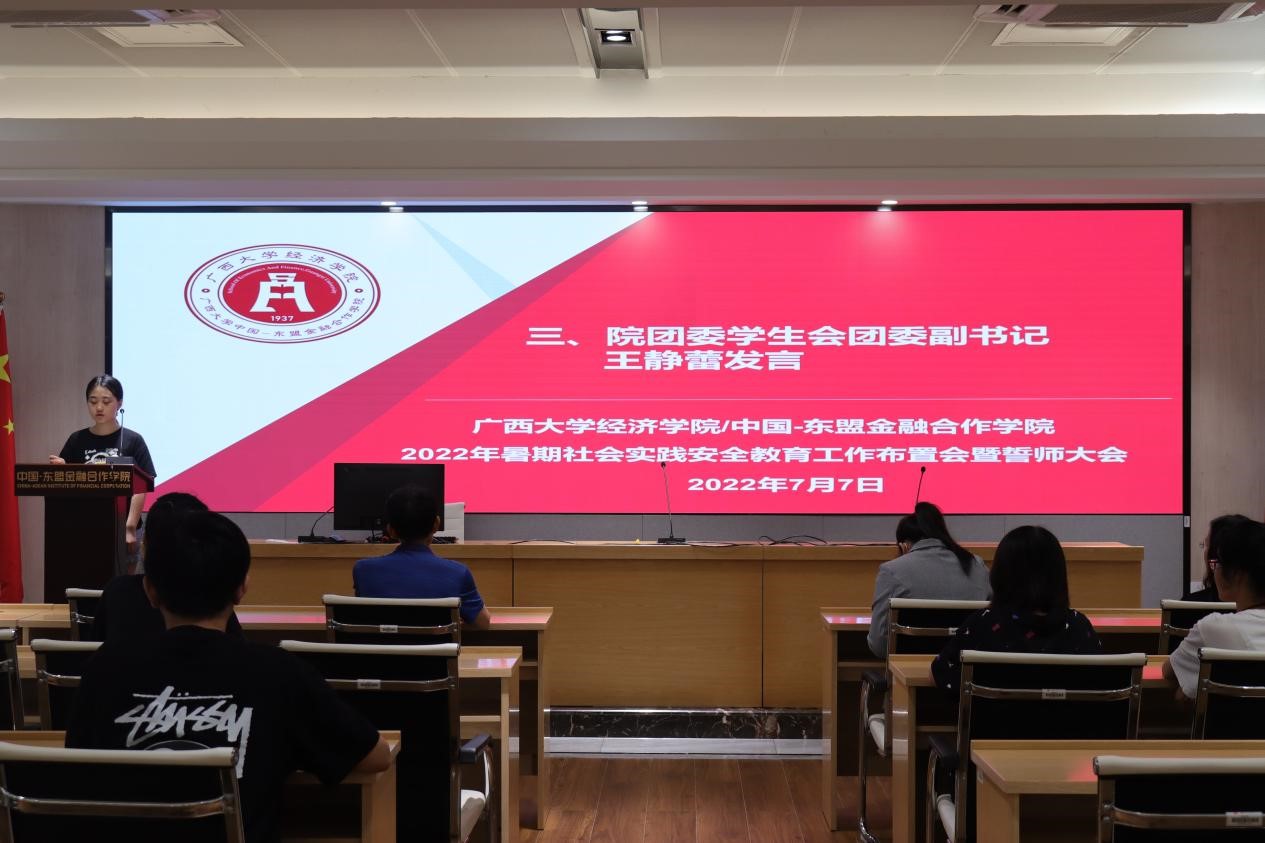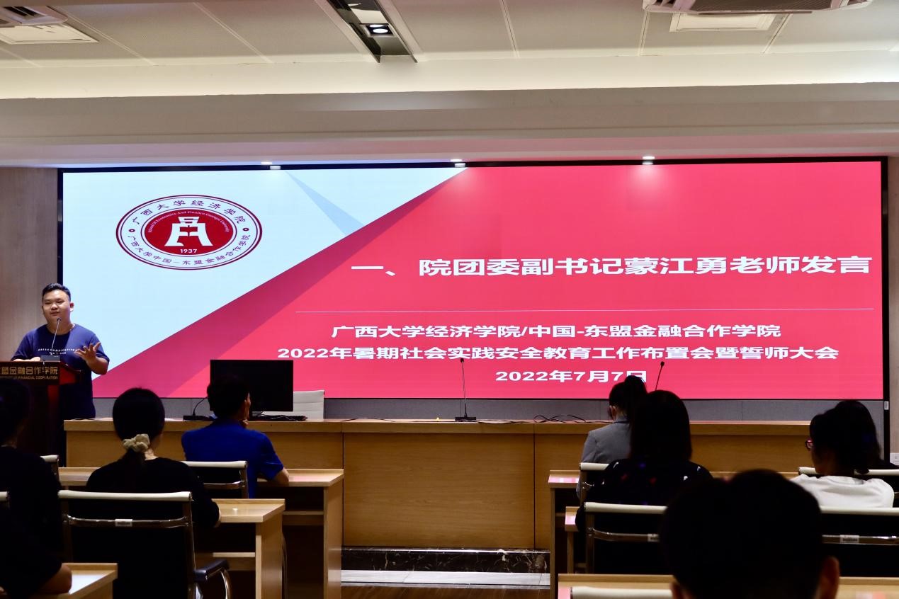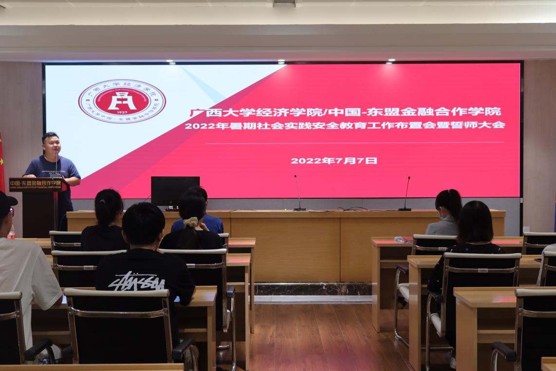 /中国-东盟金融合作学院于学院101会议室内召开2022年暑假社会实践安全教育工作布置会暨誓师大会。院党委副书记陈卉娟、院团委副书记蒙江勇、学工组辅导员蒙昀、曾宪友、覃晓阳、院团委副书记(本科生)王静蕾及大发快三平台