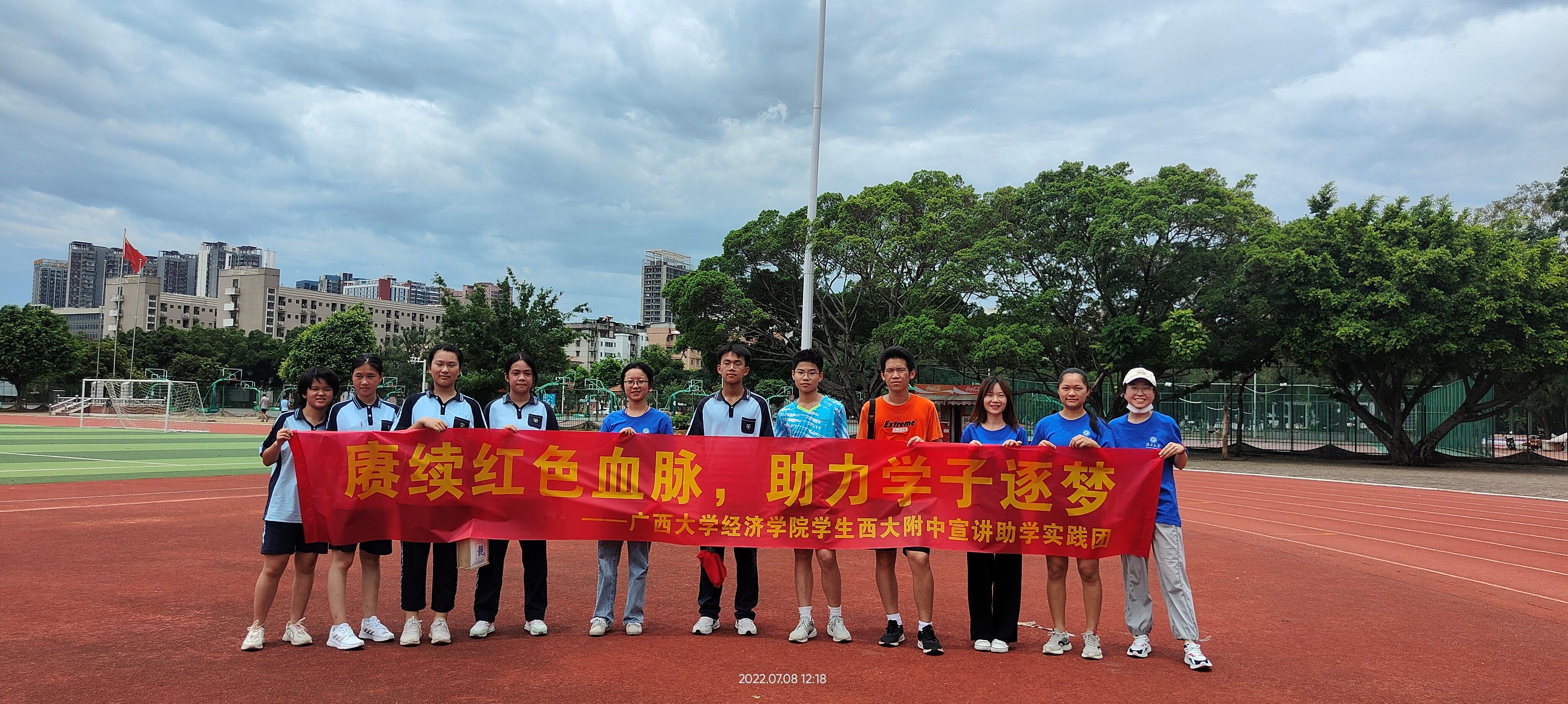 /中国-东盟金融合作学院实践团在广西大学附属中学的合影)