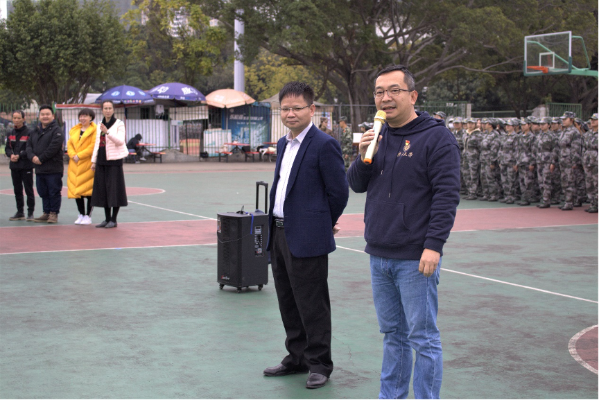 院党委副书记郭宇路对军训教官和指导员们的辛苦付出表示感谢,并表扬了同学们在这几天的军训中取得的成绩,希望大家在接下来的军训中继续端正态度,听从指挥,认真训练,为军训画上一个圆满的句号。