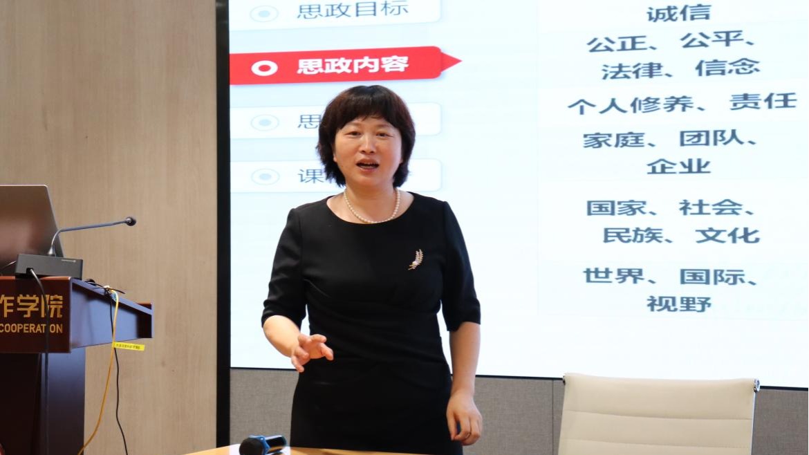 学院党委委员、副院长谭春枝教授分别从发展历程、教学内容、教学改革及教学效果等4个方面详细分享了其课程思政示范课——《金融工程学》的建设经验和心得体会,为全体与会教师就如何确立课程思政目标、挖掘筛选思政元素、丰富思政融入方式、提升课程思政育人效果、申报精品示范课等方面提供了有益参考。