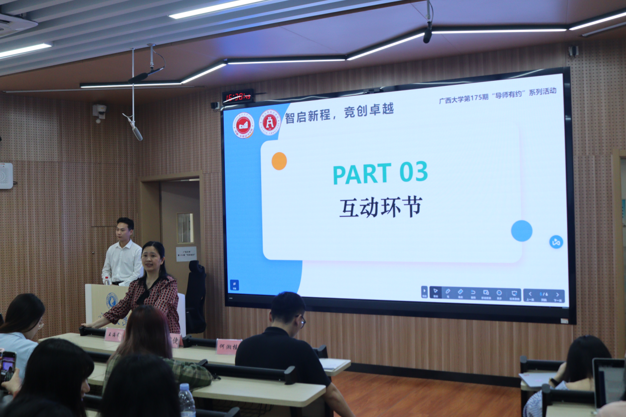 在第十教学楼10A-102教室举办广西大学第175期“导师有约”系列活动。本次活动聚焦“四创”,以“智启新程,竞创卓越”为主题,邀请到大发快三平台