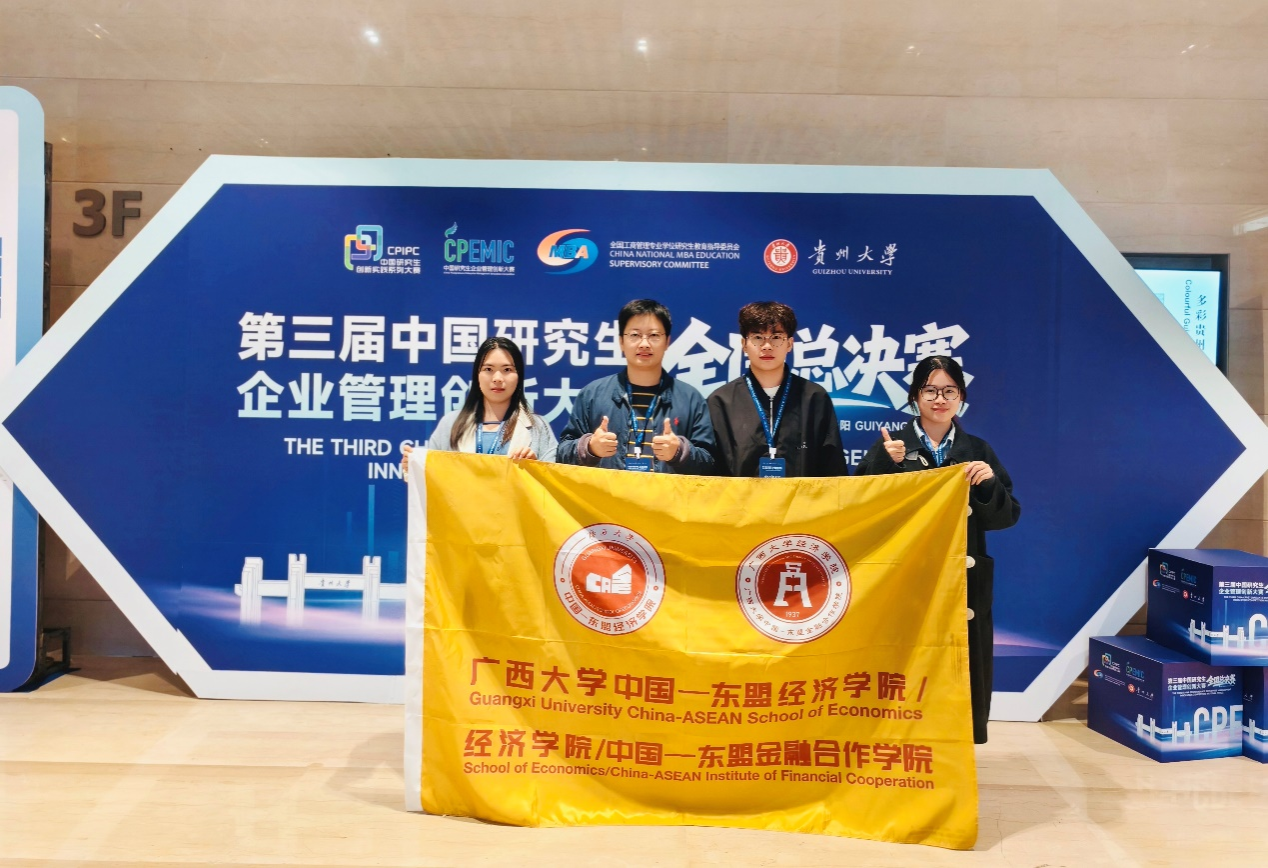 师生积极筹备,再创佳绩,在企创大赛中斩获多项大奖,包括在大赛“企业决策赛道”荣获全国一等奖1项,三等奖2项;“商业分析与智能应用赛道”荣获全国三等奖3项;“AI与数字技术应用专项赛道”荣获全国三等奖1项。此外,广西大学获颁优秀组织奖。其中,由2024级金融专硕周超超、国际商务专硕陈伊洁、罗慧莹三位同学组成的广西大学“曦和”代表队,在大赛全国总决赛企业决策赛道中表现突出,在前期倒数的情况下逆风翻盘取得总决赛小组第一名,问鼎全国一等奖(赛事最高奖项)。