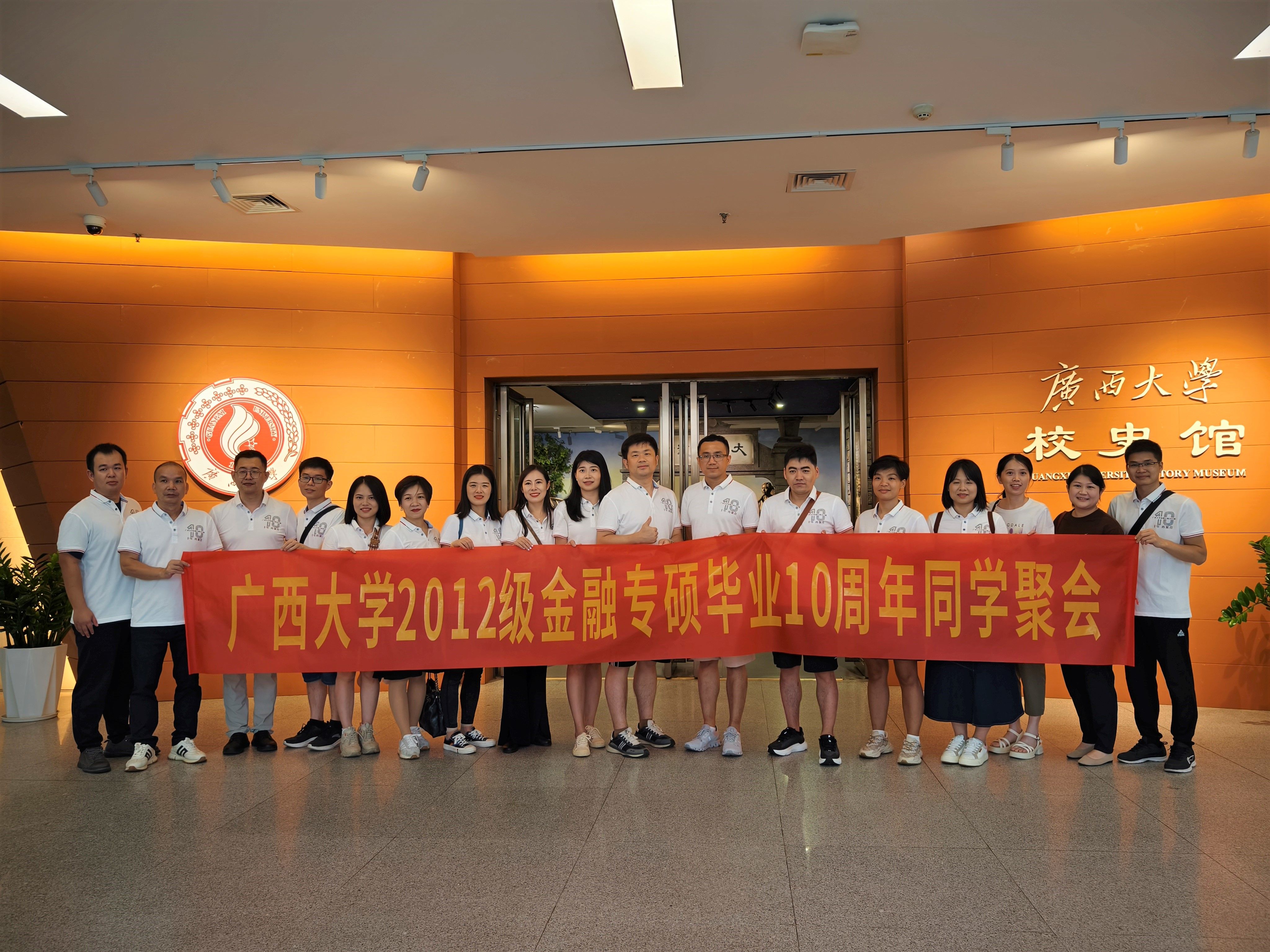 /中国—东盟金融合作学院2012级金融专硕校友齐聚南宁,重返母校,在MBA大楼315会议室庆祝毕业十周年,共叙师生情谊,重温青葱岁月。