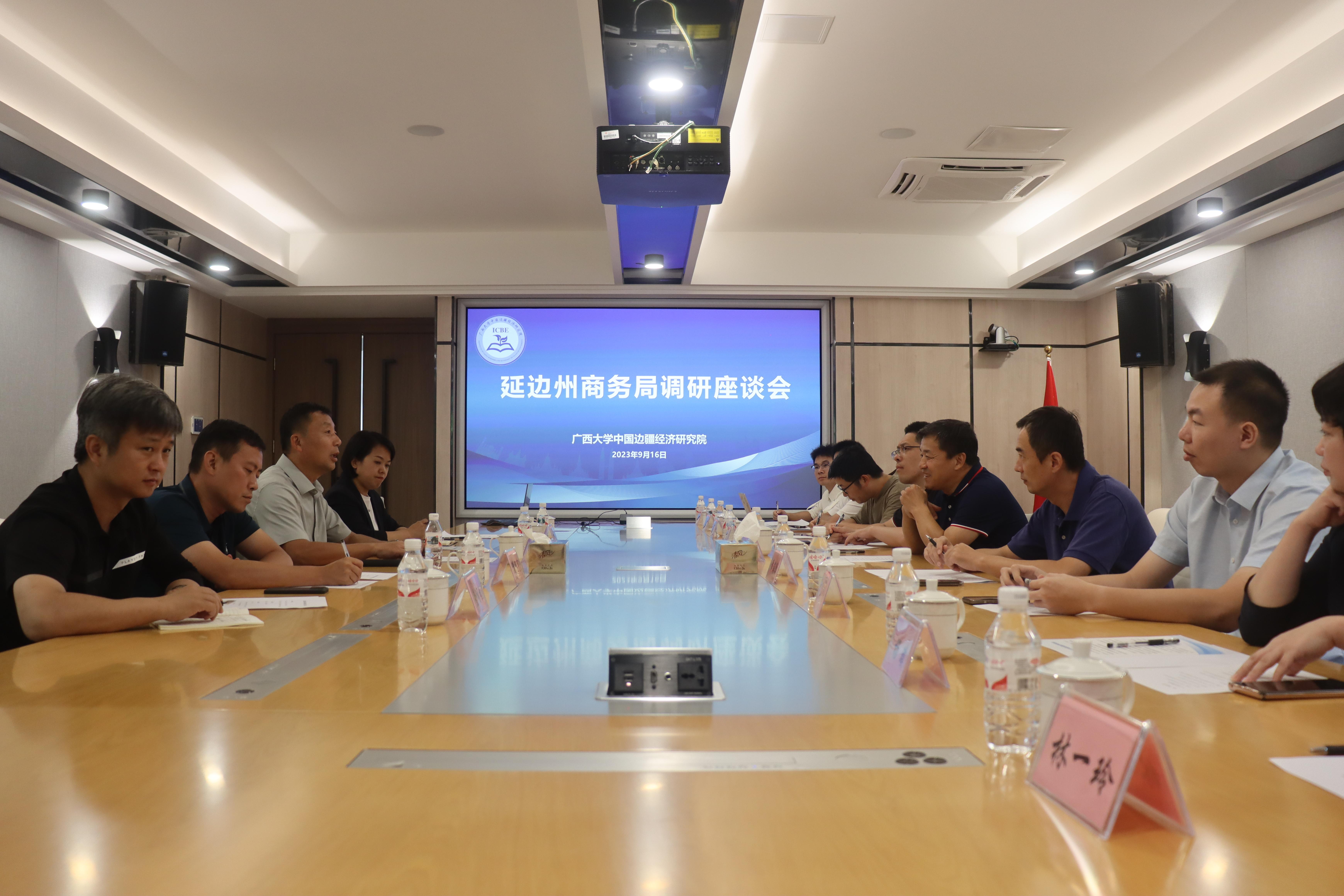 进行座谈交流,旨在加强延边州商务局与广西大学中国边疆经济研究院之间的紧密合作,共同推进边疆地区经济贸易的发展。会议由广西大学中国边疆经济研究院院长李光辉主持,商务部研究院欧洲所副所长余稳策,边疆经济研究院副院长章海源、杨璞,教师代表覃诚等人参与座谈。