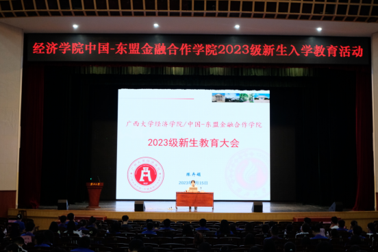 /中国-东盟金融合作学院在学校大礼堂开展2023级新生入党启发、理想信念、廉洁清正、安全纪律文明等系列入学教育活动。院党委书记陆善勇、副书记陈卉娟、团委书记王海希,学工组全体辅导员和大发快三平台