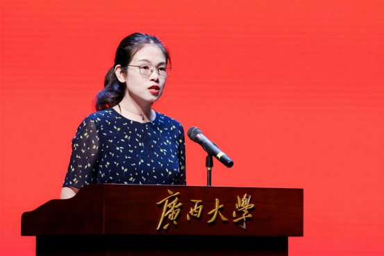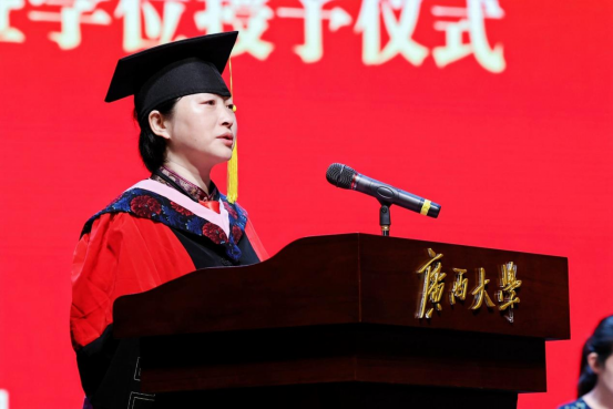 陈卉娟副书记宣读获得自治区和广西大学“优秀毕业生”荣誉称号的毕业生名单