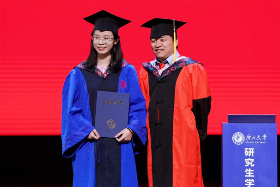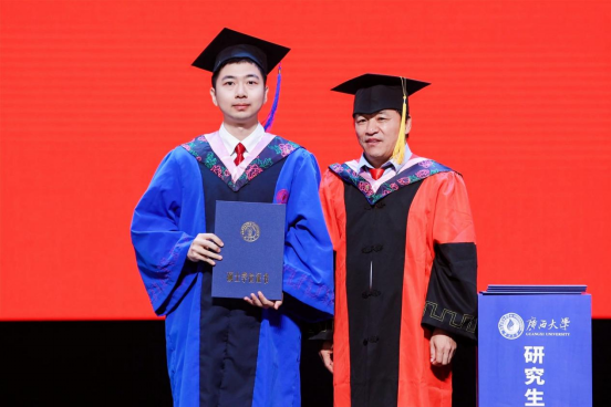 学院领导和学位评定分委员会委员为本研毕业生代表颁发毕业证书