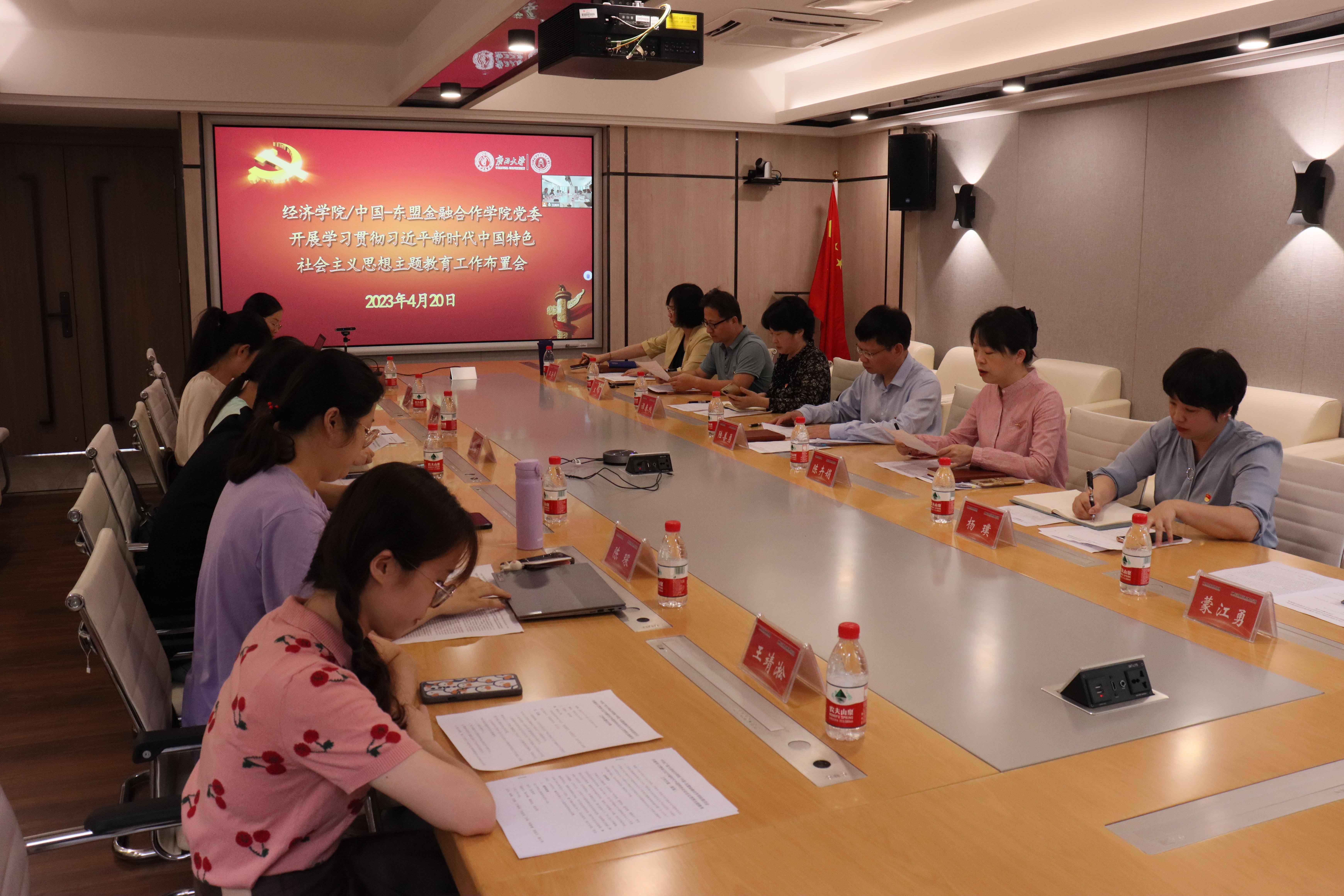 党委在102会议室召开学习贯彻习近平新时代中国特色社会主义思想主题教育工作布置会。广西大学党委委员、学院党委书记陆善勇领学并布置工作。