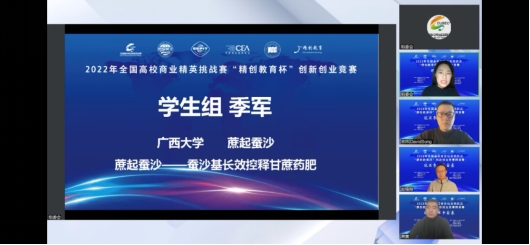 “蔗起蚕沙”参赛队积极筹备精英赛,凭借《蔗起蚕沙—蚕沙基长效控释甘蔗药肥》项目的精彩路演与线上答辩,从全国71支入围精英赛的团队中脱颖而出,最终斩获全国总决赛精英赛季军,获得2000元的现金奖励以及水晶奖杯。