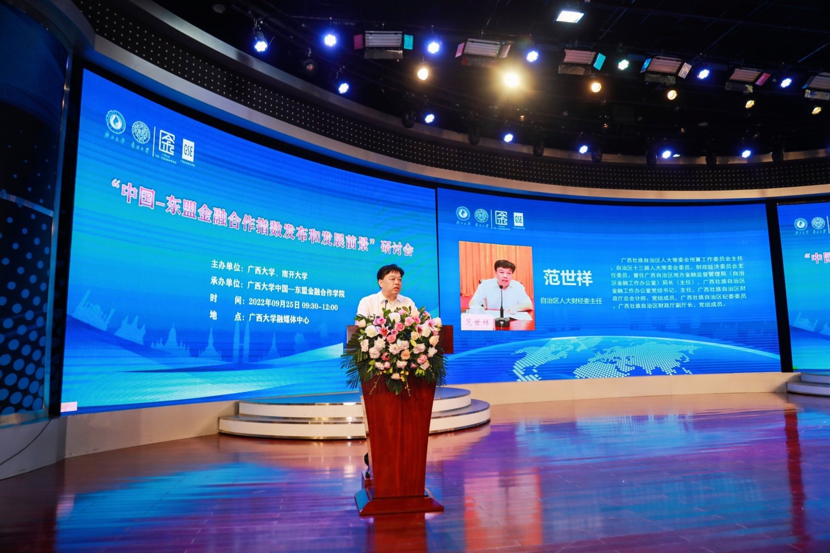 9月25日,广西大学中国—东盟金融合作学院与南开大学金融发展研究院合作举办“中国—东盟金融合作指数发布和发展前景”研讨会,重磅发布“中国—东盟金融合作指数”。这一指数为中国—东盟金融合作研究提供合成数据,为企业投资和贸易发展提供区域金融环境研判参考,也为评价区域金融合作具体举措的成效提供政策评价工具。会上,来自政府部门、研究机构、金融机构和中国贸促会的专家学者、业界领袖通过“线上+线下”的方式研讨中国—东盟金融合作的发展路径和发展前景。活动引起广泛关注,人民网、广西电视台、广西新闻网等对活动进行报道。