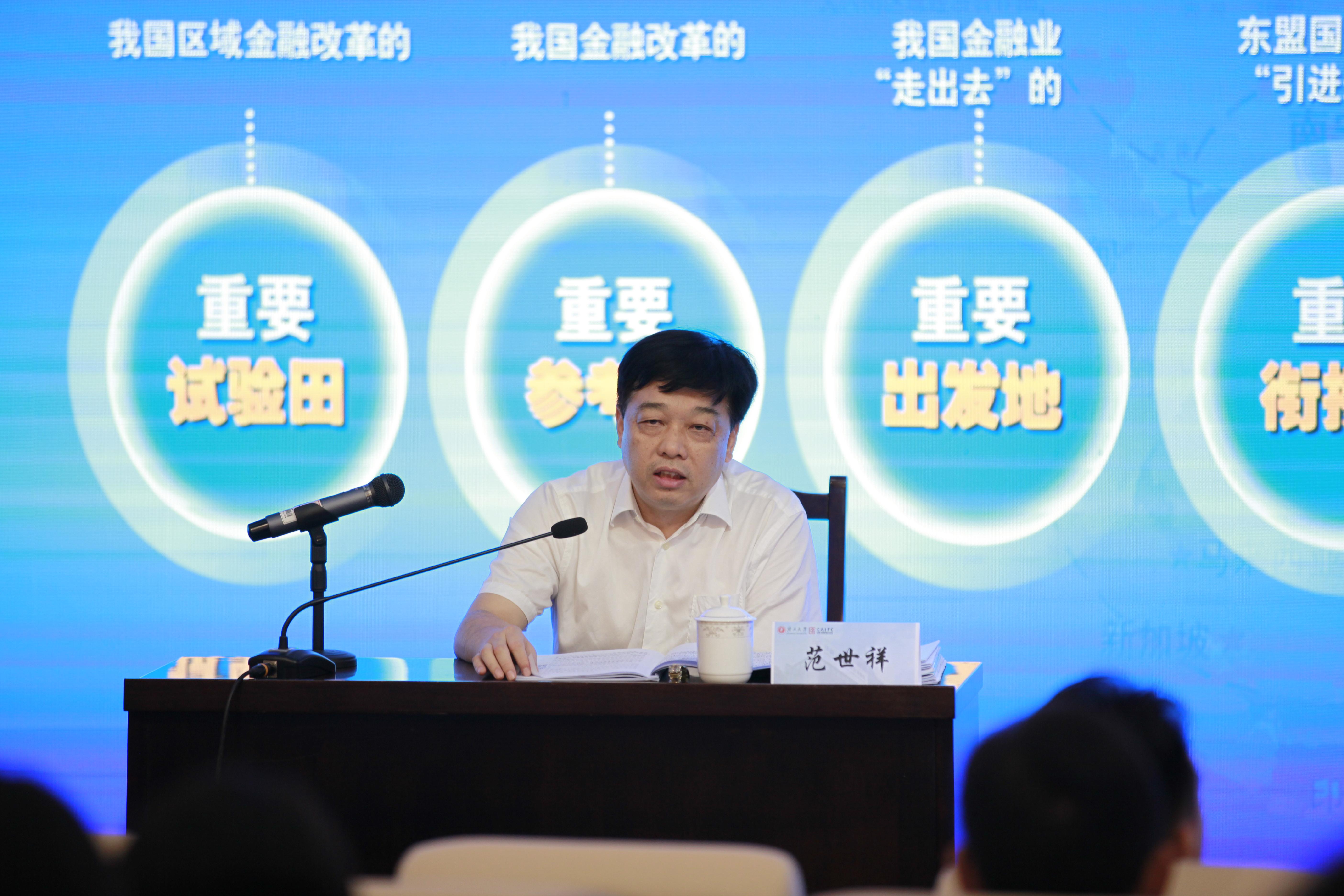 范世祥局长强调,广西建设面向东盟的金融开放门户上升为国家战略,意味着广西金融发展迈入一个新时代,将为区域金融改革探索可复制的经验。范局长从金融开放门户是什么、金融开放门户有什么、金融开放门户要建什么三个问题出发,全面阐述了广西金融开放门户的使命和当前工作推进动态。在自治区政府的统筹领导和多方不懈努力下,改革工作取得显著成效。下一步,广西将继续在金融改革试点上发力,争取开展期现结合试点、争创绿色金融改革创新试验区、争取设立“振兴边疆”等政府引导基金或发展基金、争取开展普惠金融服务乡村振兴试点、建设中国—东盟跨境金融服务中心。