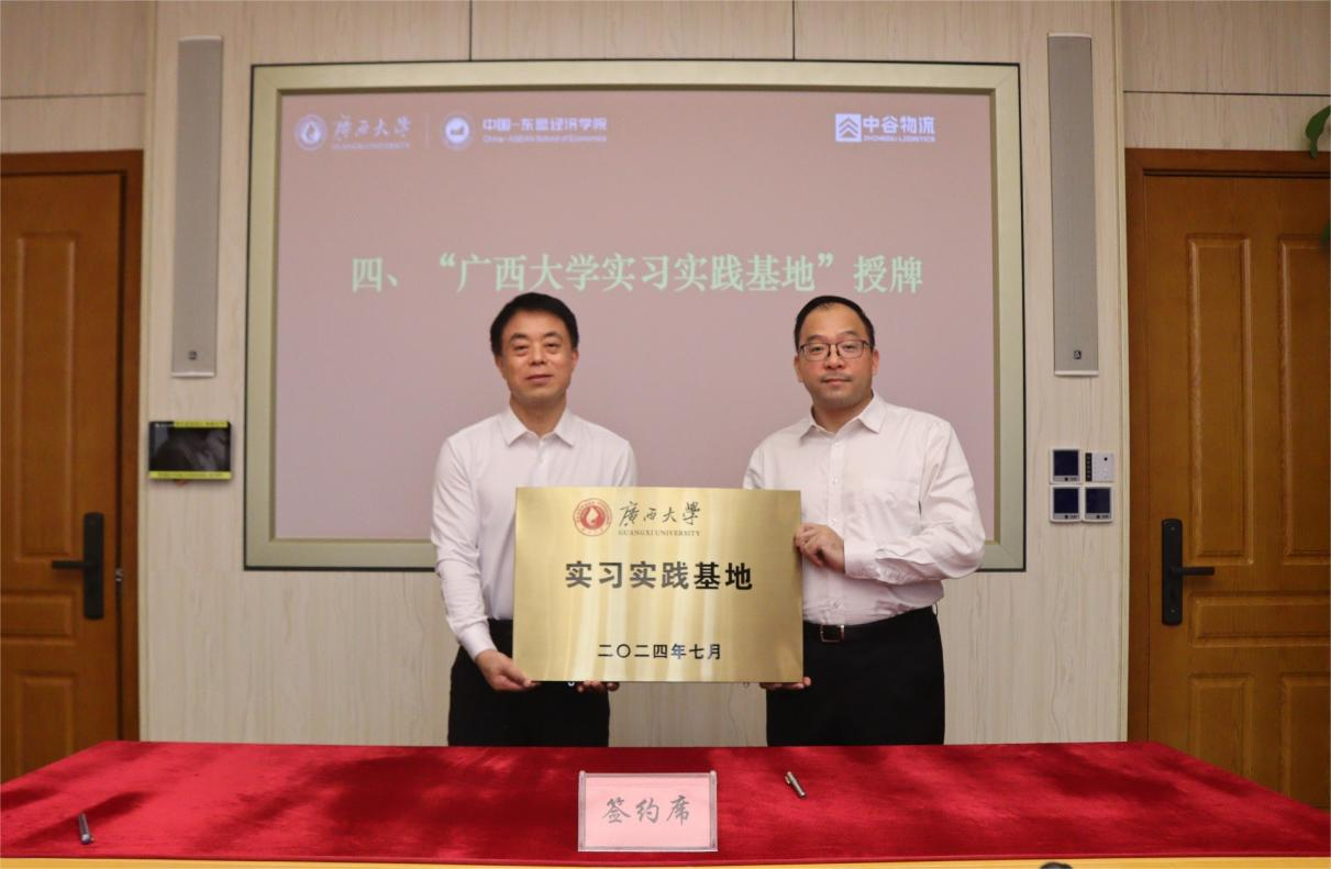 仪式上,双方举行了“中谷海运奖学金”捐赠签约和“广西大学实习实践基地”授牌。