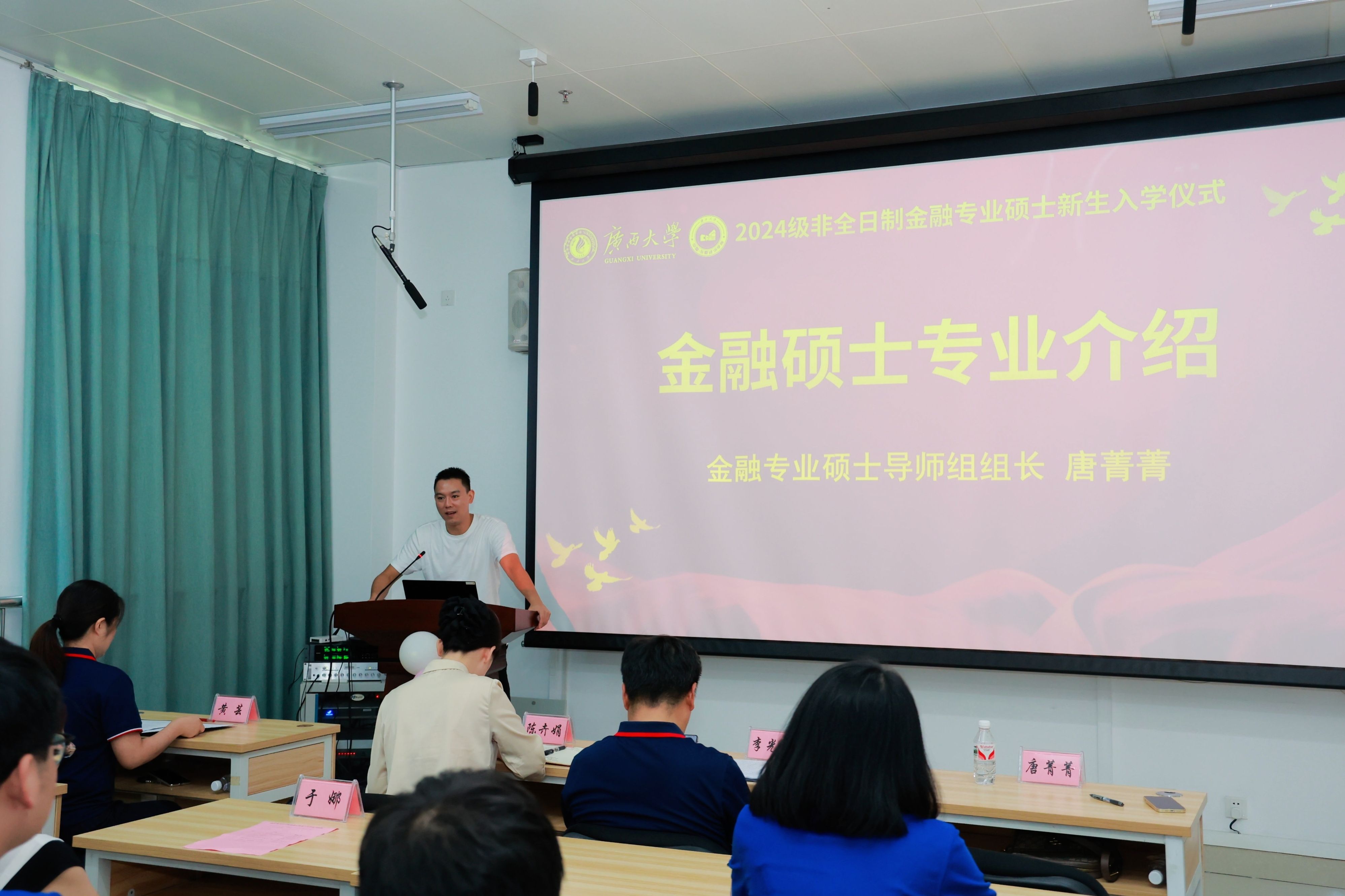 /中国—东盟金融合作学院2024级非全日制金融专业硕士新生入学仪式暨入学教育活动在学院405教室举行。学院院长李光辉,党委副书记、纪委书记陈卉娟,金融硕士导师组组长唐菁菁,班主任马俊峰,辅导员于娜,学院研究生办公室老师出席仪式。