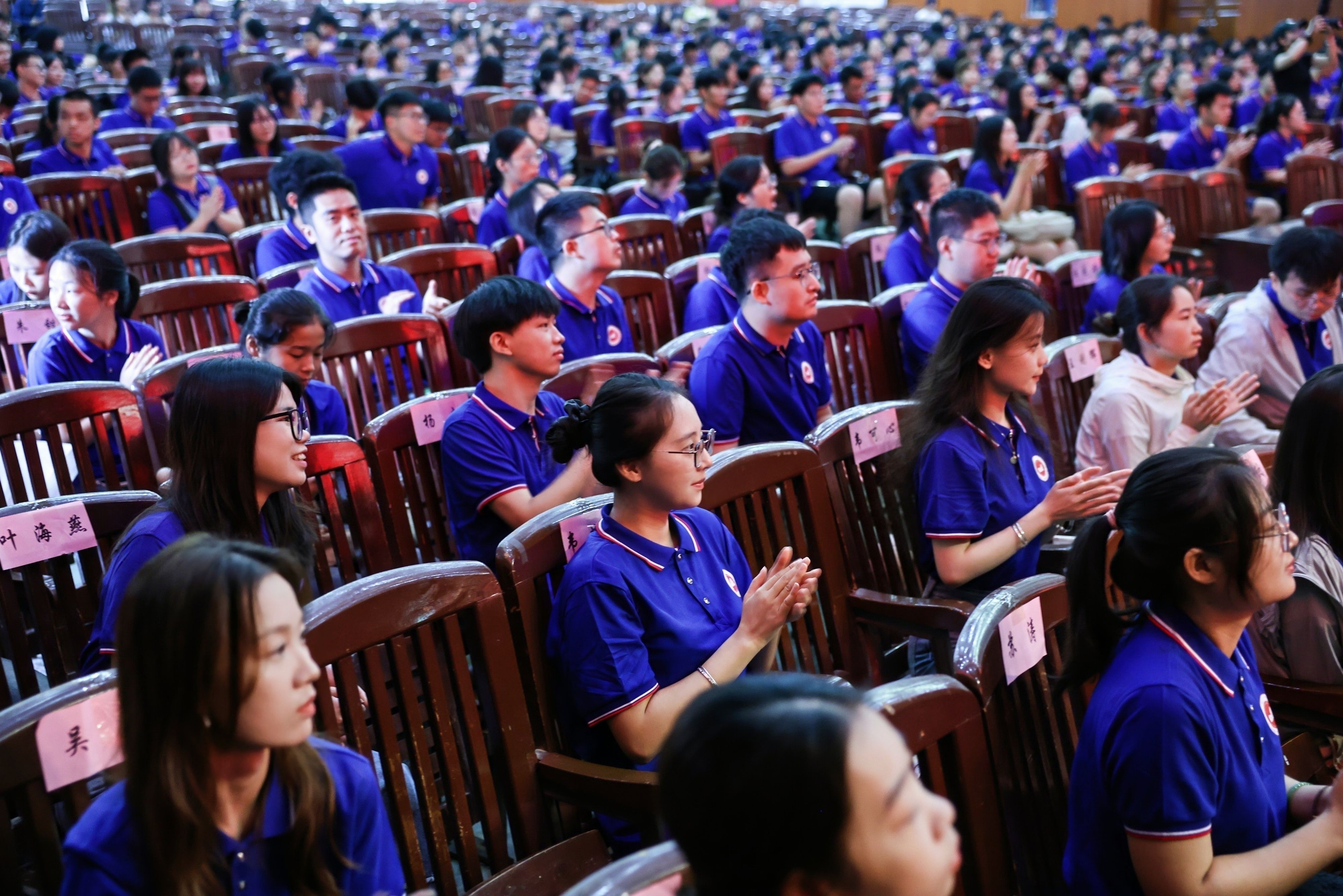 /中国—东盟金融合作学院在学校大礼堂为2024级533名新生举行开学仪式,校党委常委、副校长、院党委书记(兼)夏国恩,院党委常务副书记罗诚,院长李光辉,常务副院长梁运文,院党委副书记、纪委书记陈卉娟,副院长谭春枝,副院长梁权熙,副院长杨璞出席仪式,陈卉娟主持仪式。