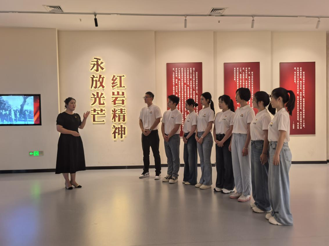 步入红岩革命纪念馆,陈列的珍贵文物及其史料记载,无声诉说着周恩来、叶剑英、董必武等革命先辈在国统区心脏地带坚持斗争、力挽狂澜的峥嵘岁月。学院党委副书记刘梦娟老师在馆内为实践团的成员介绍道:“红岩革命纪念馆的一物一景,都闪耀着共产党人对党的无限忠诚和对革命事业的坚定信念,先辈们身处险境依然岿然不动、心怀大局的精神,铸就了不朽的红岩丰碑”。这场行走的思政课,让实践团的成员们不断与信仰对话,深刻体悟到红岩精神所蕴含核心特质,这正是中国共产党人不断穿越风雨的强大精神密码。成员们纷纷表示,要自觉传承红岩基因,从中汲取奋进力量,让红岩精神在新时代绽放光芒。