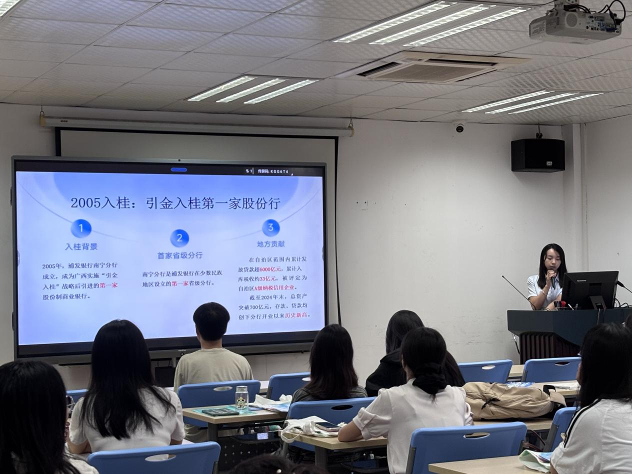 浦发银行南宁分行代表通过生动的讲述,系统展示了银行的发展历程、大发快三平台、核心业务板块以及清晰的员工职业发展通道与具有竞争力的薪酬福利体系。宣讲内容不仅勾勒出浦发银行作为现代金融机构的宏伟蓝图,更传递出对青年人才成长的真切关怀。