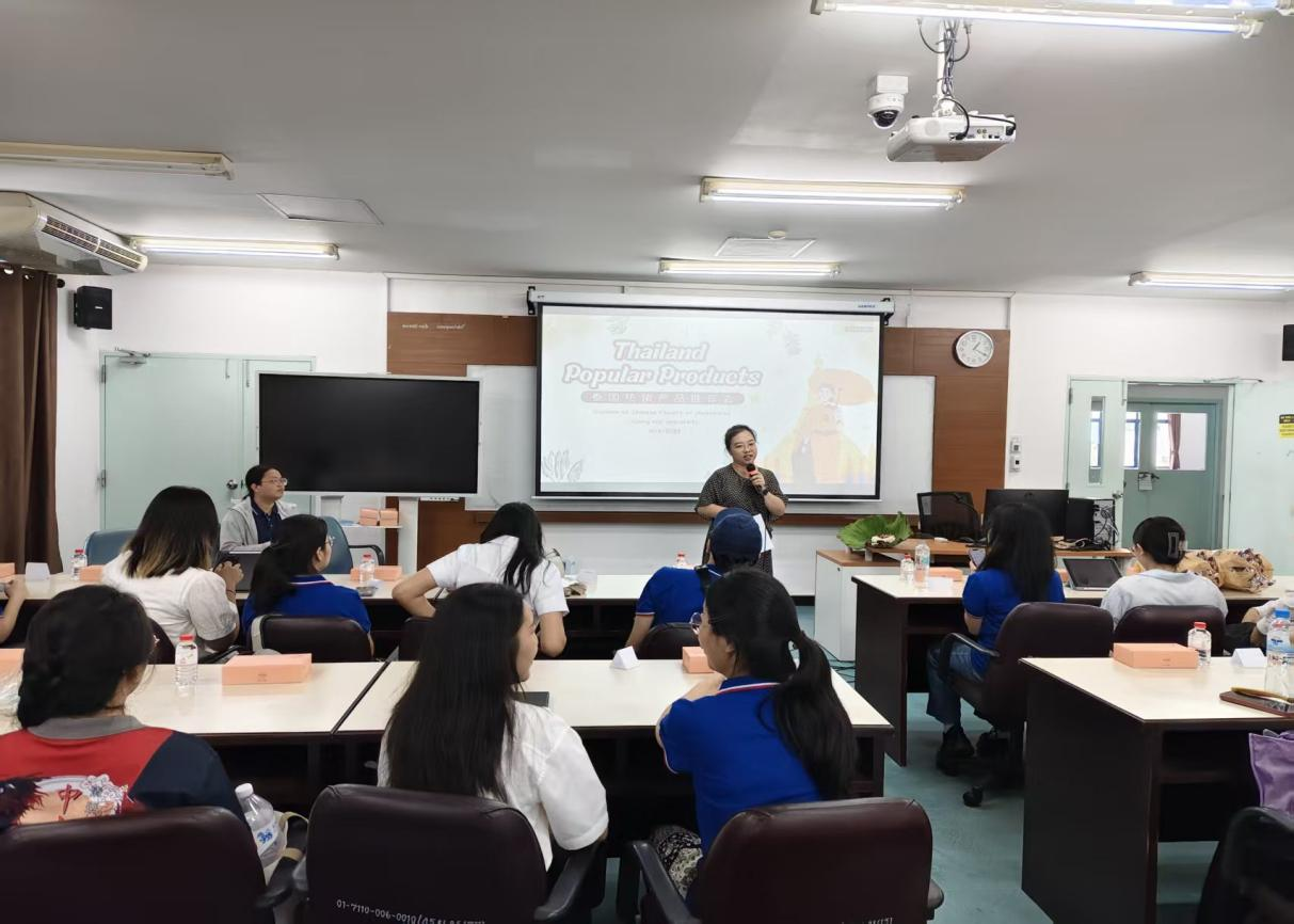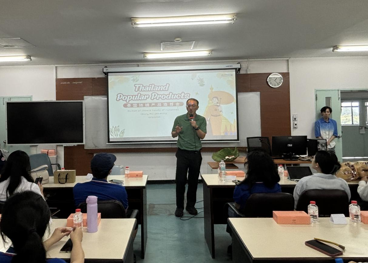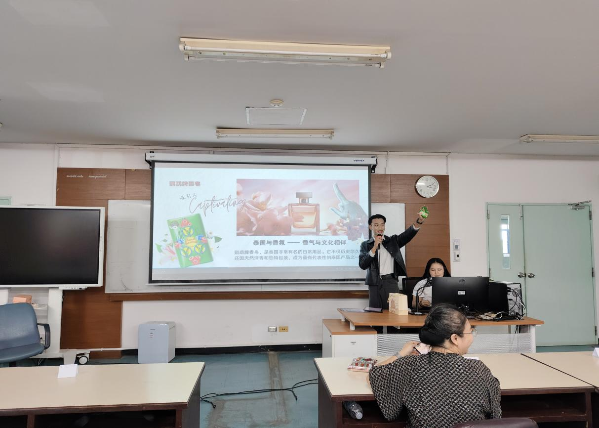 交流会的开场由清迈大学人文学院中文系的古梦玉老师率先登台致辞。她满怀热情地欢迎来自广西大学的交流访学团,并说:“中泰两国地缘相近、文化相通,我们希望通过此次交流让两校青年在学术碰撞中增进理解,成为中泰友好传承的桥梁。”紧接着,清迈大学CAMT数字学院副院长李雄鹰老师强调:“我们的‘产品+文化’协作模式,将帮助中泰青年在展示专业能力的同时,深入挖掘产品背后的文化内涵,推动两校合作向更广阔的领域拓展。”