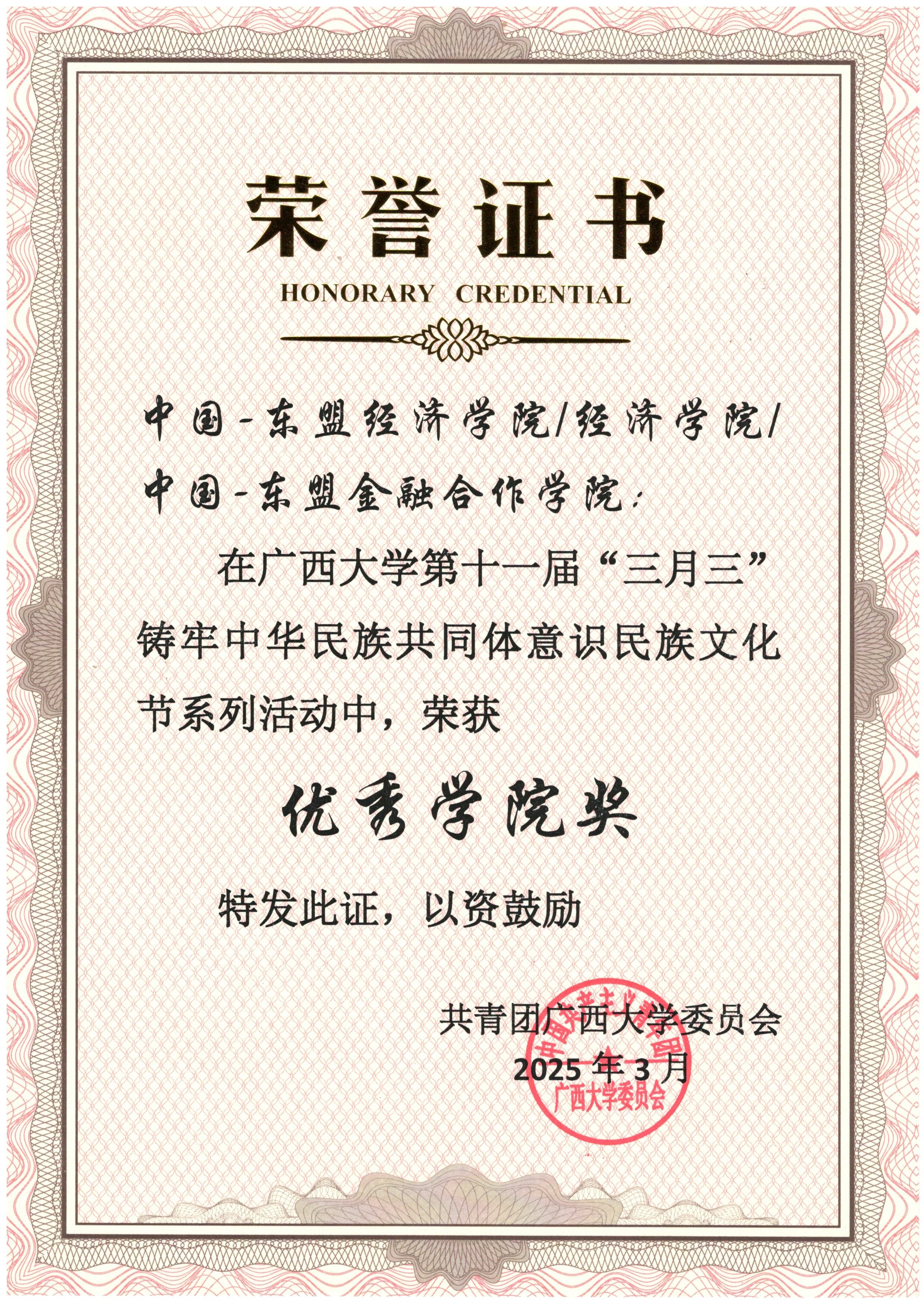 获第十一届“三月三”铸牢中华民族共同体意识民族文化节优秀学院奖