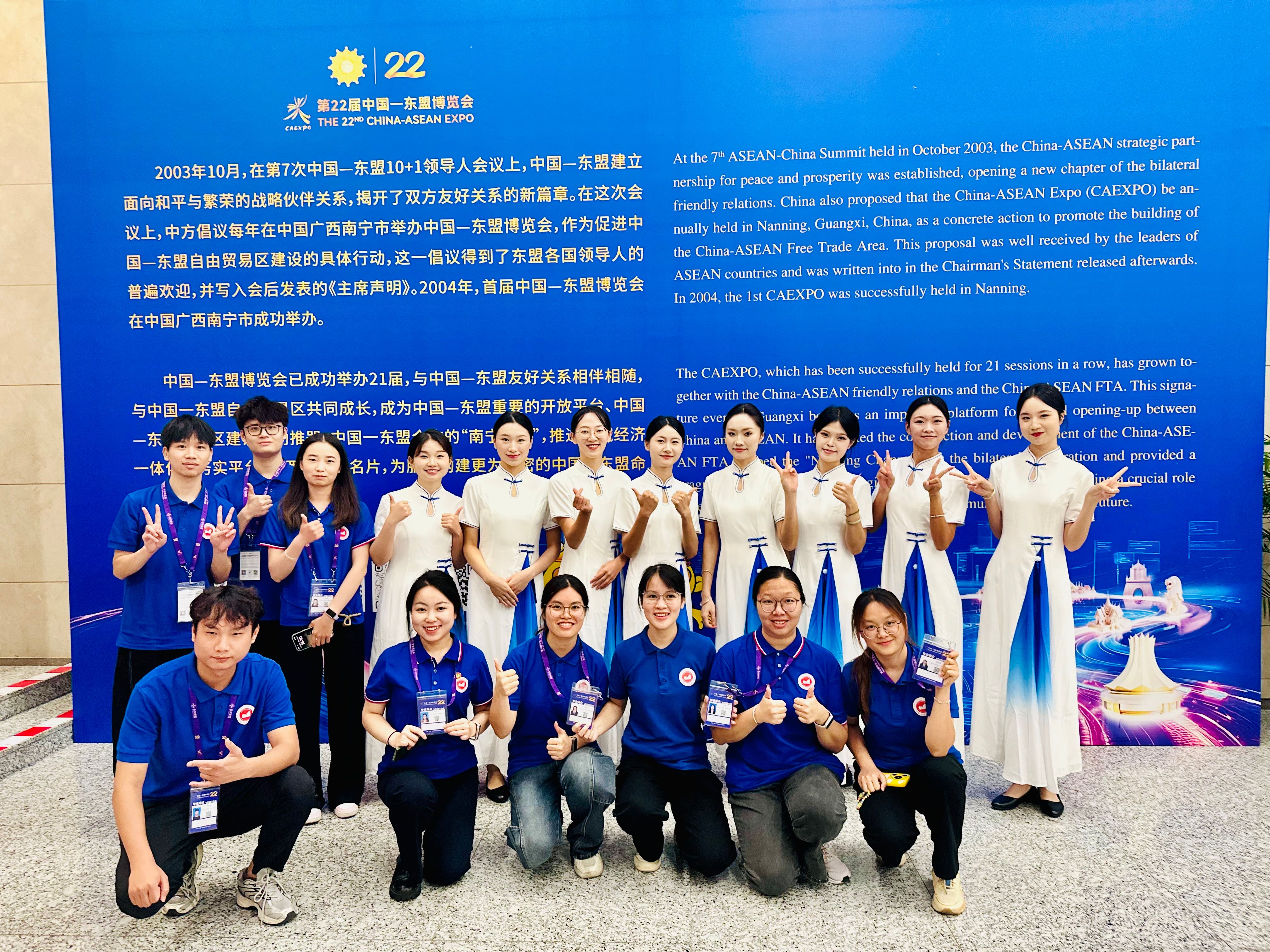 组织学生志愿者服务第22届中国—东盟博览会(部分志愿者在南宁国际会展中心活动现场合影)