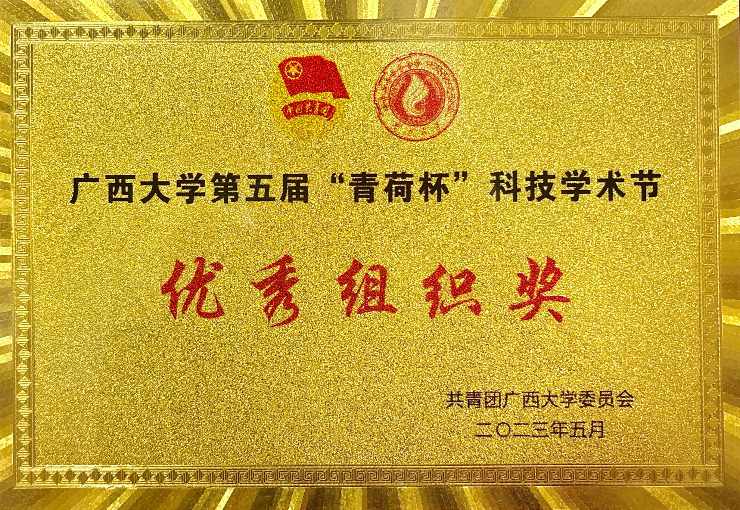 获广西大学第五届“青荷杯”科技学术节优秀组织奖