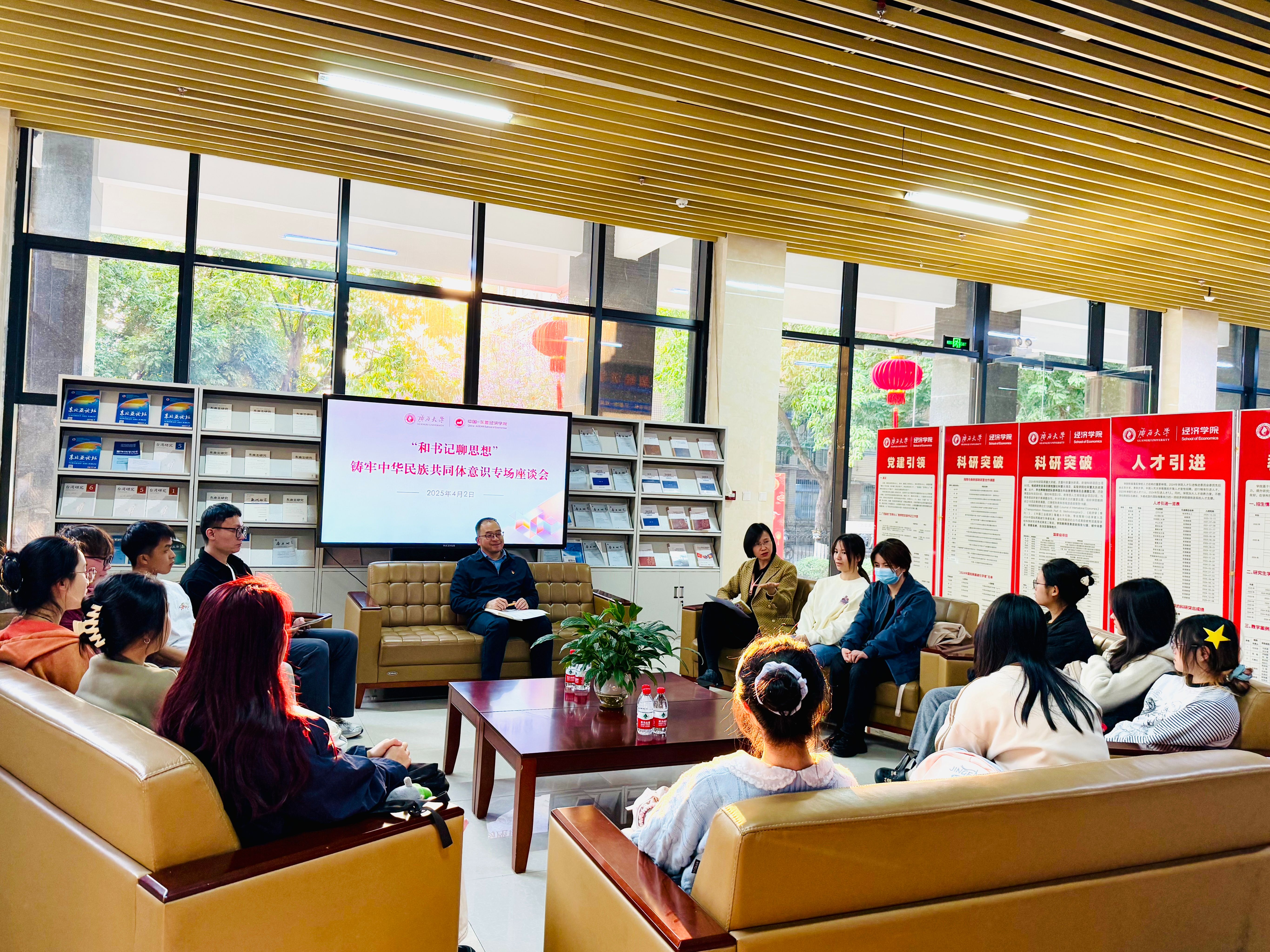 本院始终致力于用心贴近青年、用情引领青年,多样化开展丰富的青年交流活动。如联合广西银保监局举办“迎五四树廉心”金融青年与大学生“廉洁畅聊会”,联合南宁市第三中学团委开展国旗下的励志教育演讲活动。五年来,累计举办“金才有约”“经才有约”公考、升学和生涯发展规划等系列主题沙龙近20场;累计组织东盟国家小语种培训班4期;举办主题文艺晚会5场,组织“金才杯”系列体育赛事并邀请留学生举办友谊赛,比赛覆盖学生2500余人。通过充分发挥学科专业特色,积极融入国际化进程,有效拓宽本院学子的格局视野。