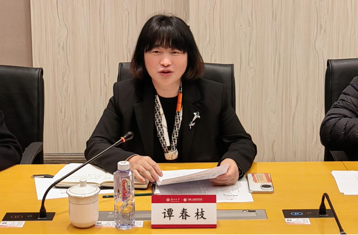 副院长梁权熙主持座谈会,副院长谭春枝、公正及经济学系、数字经济系、对外交流办相关负责人参会。