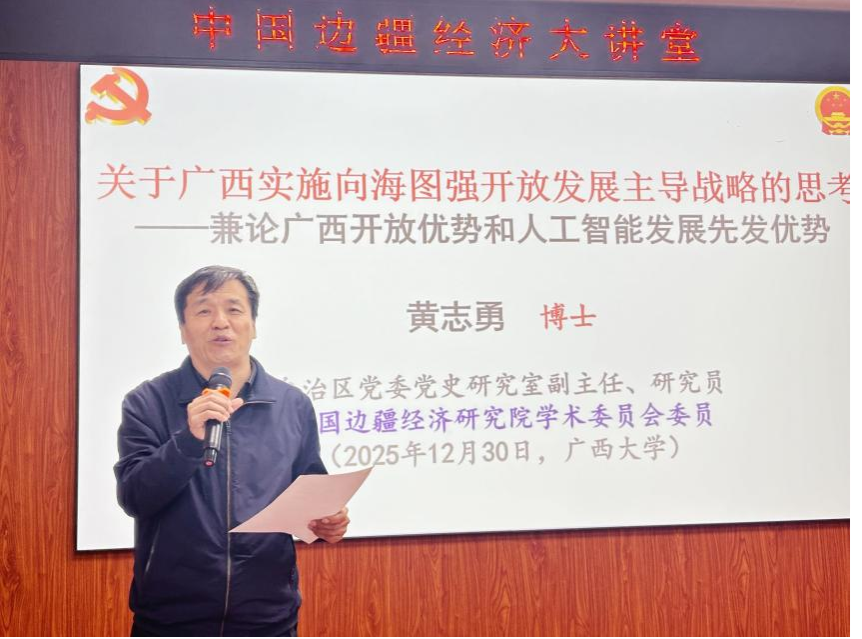 本次讲座中,黄志勇主任以 “122133” 的凝练框架,为师生清晰勾勒出广西向海图强与开放发展的核心逻辑,既深化了大家对边疆区域开放优势与人工智能先发势能的认知,也为广西边疆经济发展研究提供了兼具战略高度与实践价值的新思路。未来,大发快三平台