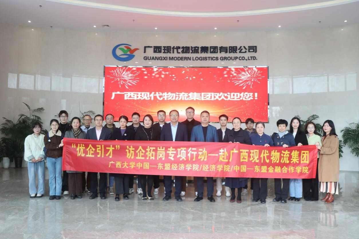 /中国—东盟金融合作学院师生代表一行22人在党委书记姜玮带领下,赴广西现代物流集团有限公司、广西五洲交通股份有限公司开展专题调研与座谈交流,推动校企协同育人走深走实。