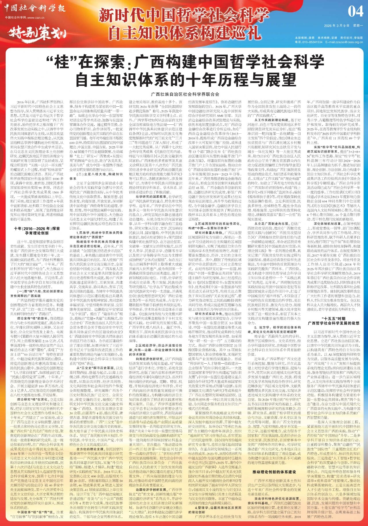 桂学是广西最具代表性的学科,聚焦于区域整体性、文化系统性、综合学科建设的研究,在构建中国哲学社会科学自主知识体系中具有独特价值。