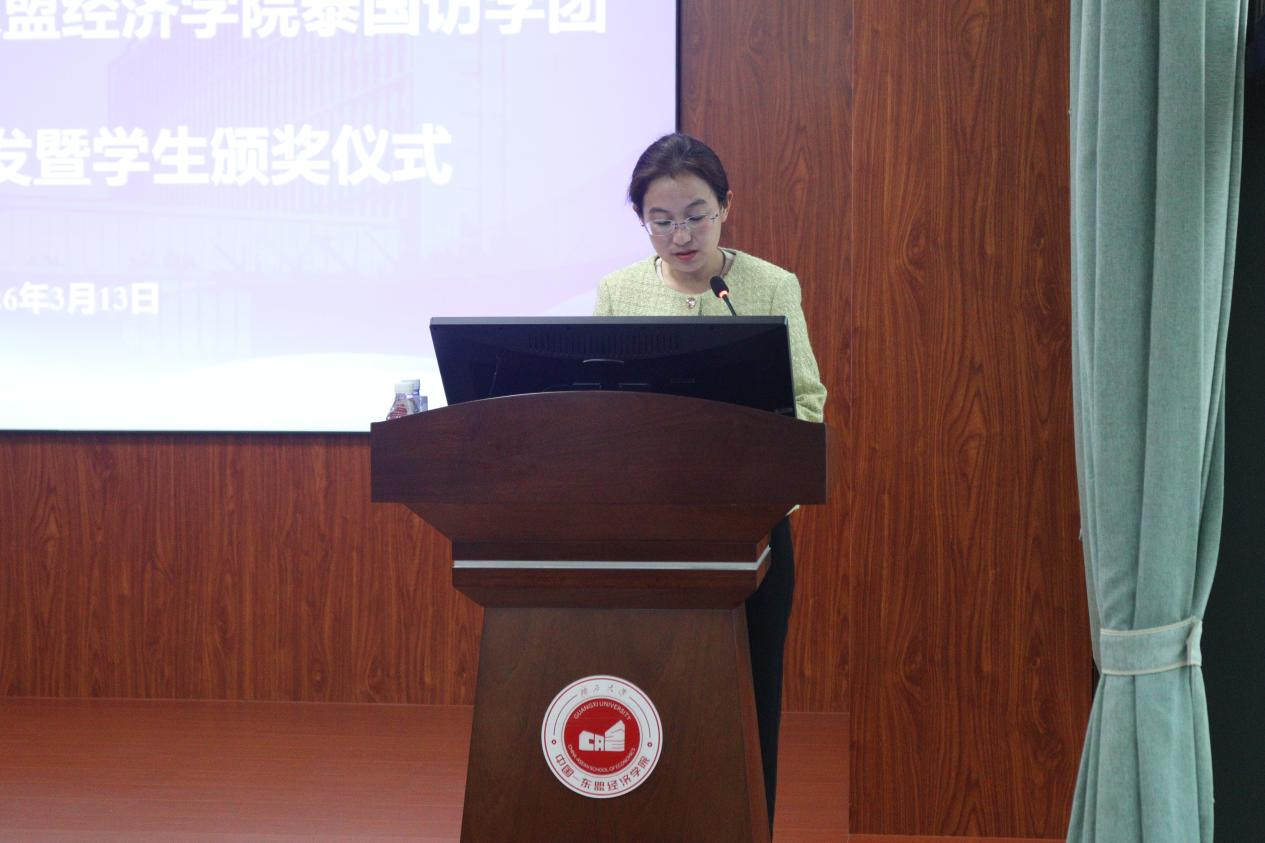 刘梦娟副书记在总结中深情寄语:这张结业证书不仅是一份荣誉,更是一份沉甸甸的责任。希望同学们带着对东盟区域经济的深刻理解,带着“中泰一家亲”的温暖记忆,在更广阔的舞台上书写无愧于时代的青春华章。